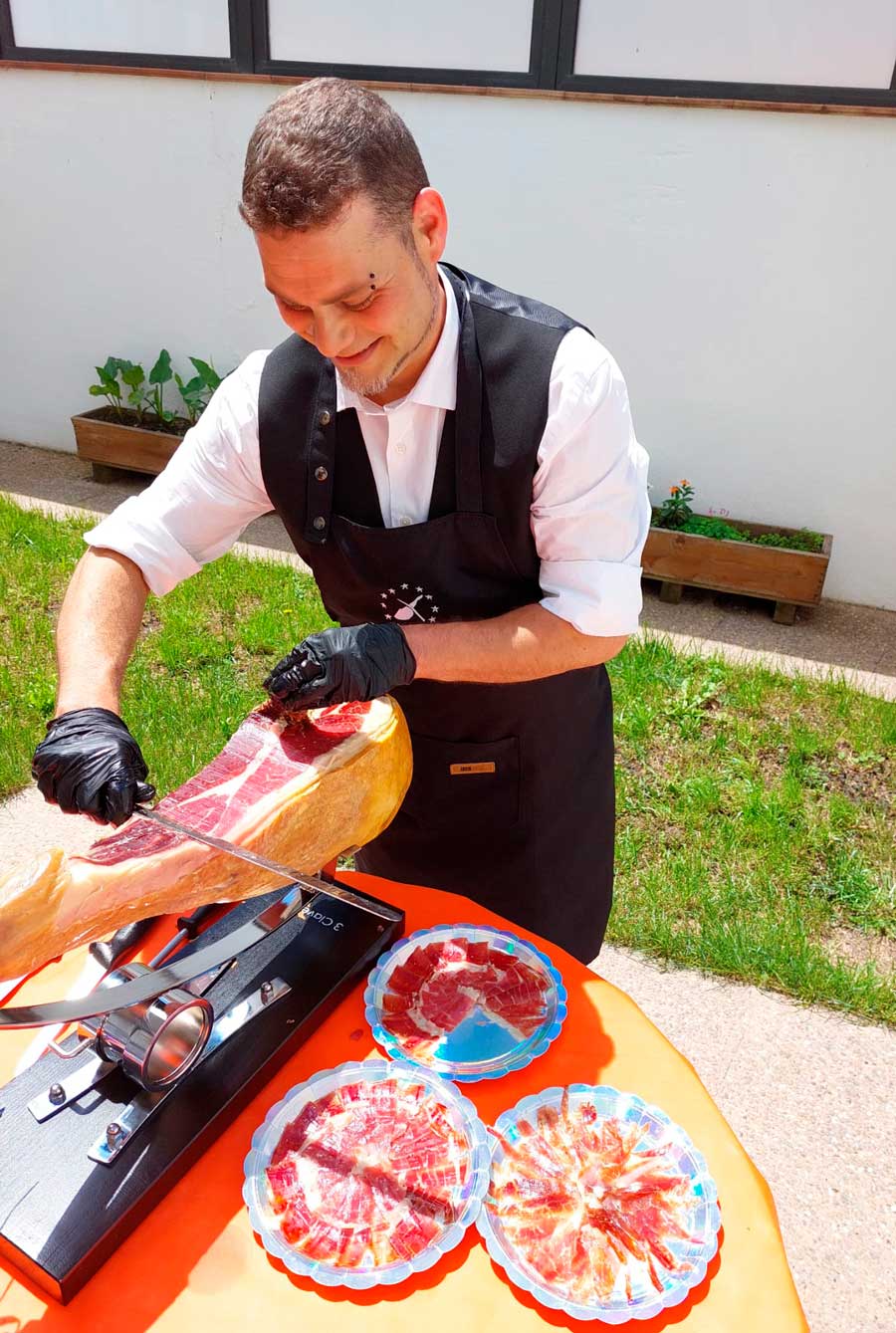 ¡Disfruta del sabor auténtico del jamón con un maestro cortador a tu disposición!