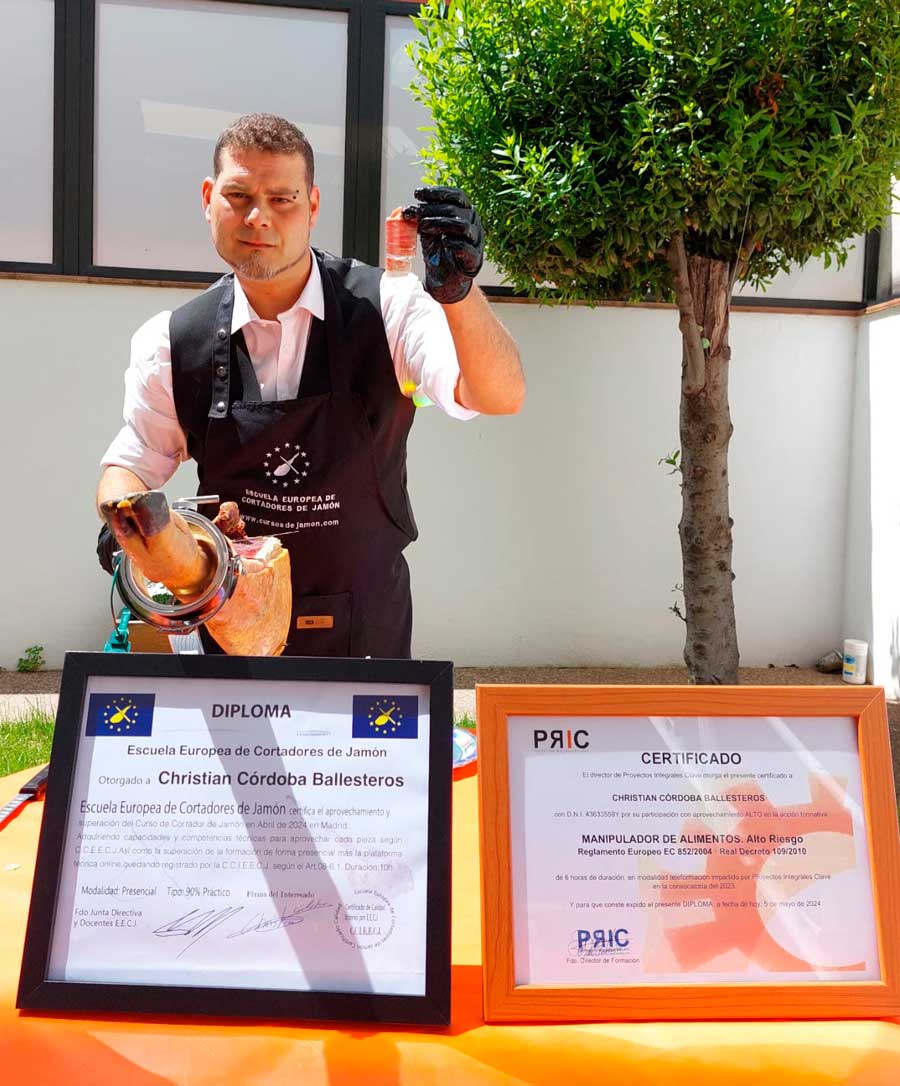 Christian Córdoba Ballesteros, cortador profesional de Jamón en Barcelona, formado en la Escuela Europea de cortadores de jamón