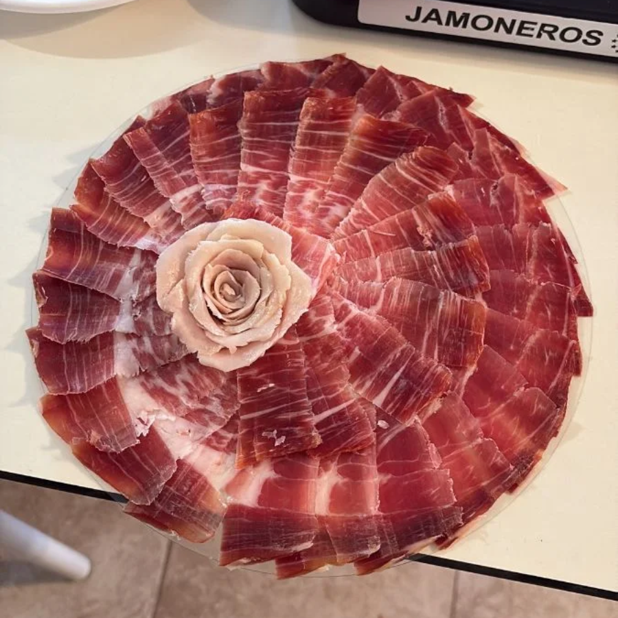 Mis platos de jamón destacan por su cuidado diseño y precisión, convirtiéndose en un verdadero espectáculo que deleita tanto la vista como el paladar de los invitados.