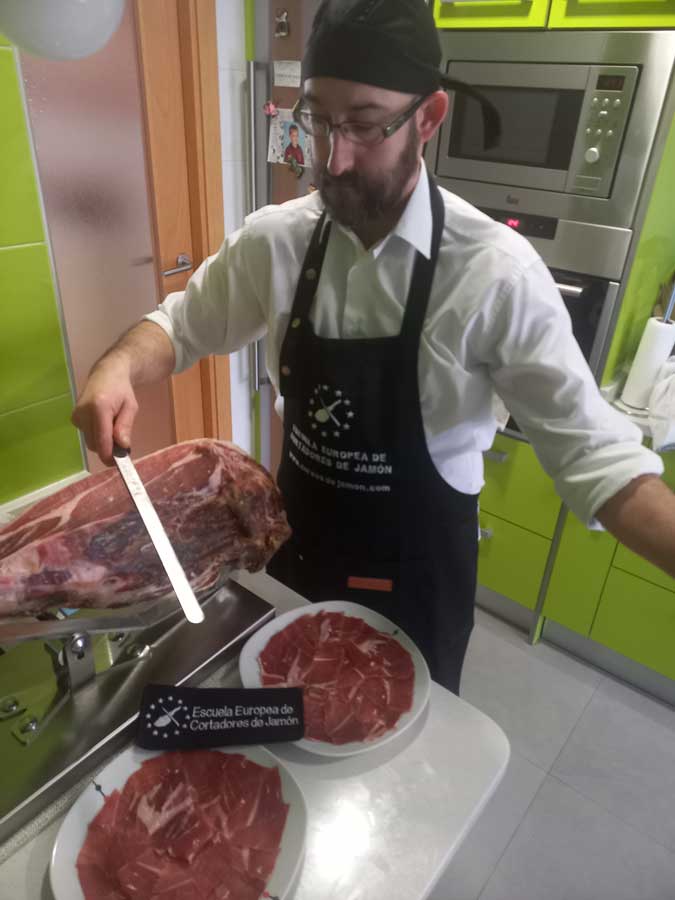Gonzalo Ordóñez Martín, cortador profesional de Jamón en Alcorcón, formado en la Escuela Europea de cortadores de jamón