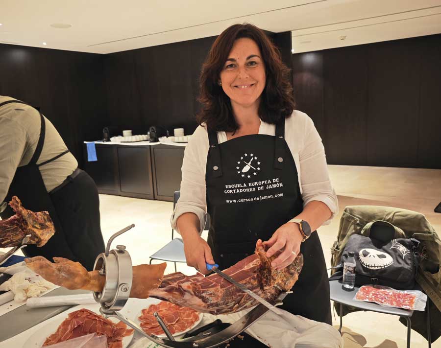 Magdalena Barea Cabrera, cortadora profesional de Jamón en Algeciras formada en la Escuela Europea de cortadores de jamón