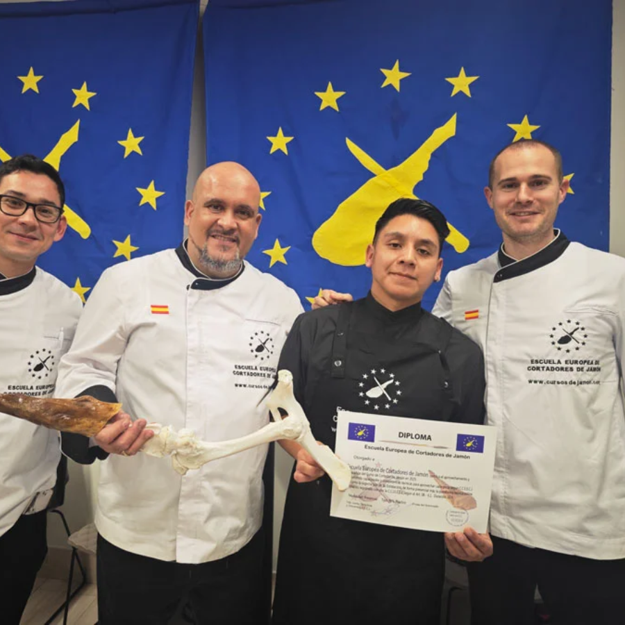 Ronald Padilla ha perfeccionado sus habilidades de corte gracias a su dedicación y constante aprendizaje. Como alumno de la prestigiosa Escuela Europea de Cortadores de Jamón, ha adquirido los conocimientos necesarios para destacar en el sector y ofrecer un servicio de alta calidad. La escuela es reconocida por formar a los mejores cortadores de jamón, y Ronald es un claro ejemplo de su excelencia.